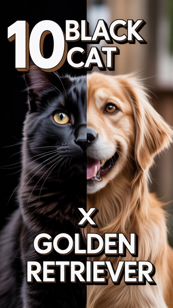 You get the best of both worlds with this pairing. The black cat brings that cool, independent mystique; they’re the silent observer, the sophisticated shadow. Then, the Golden Retriever bursts in with boundless joy, tail wags, and unconditional love.